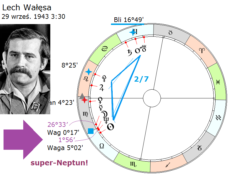 Raczej ludzie znikają, sławni ludzie raczej znikają z pola widzenia, kiedy Saturn im przechodzi przez ten obszar nieba, natomiast Wałęsa właśnie wypłynął i myślę, że to jest też potwierdzenie wielkiej wagi tej koniunkcji z obu światłami i Neptunem w sektorze międzyosiowym, czyli transgresja. On właśnie zaistniał jako taki transgresyk.