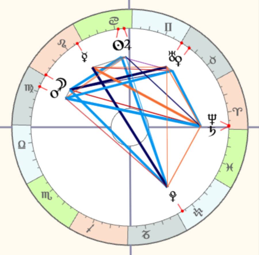 Wielki trygon z latawcem i poprzeczką (opozycją Marsa do Sat/Nep) plus pełnia, a opozycja Księżyc-Słońce wraz z opozycją Mars-Sat/Nep układa się w prostokąt złożony z opozycji i oktyli:
