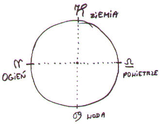 | Rys. 6. Cztery punkty kardynalne ekliptyki i ich żywioły |