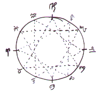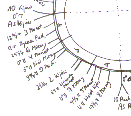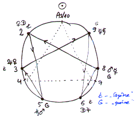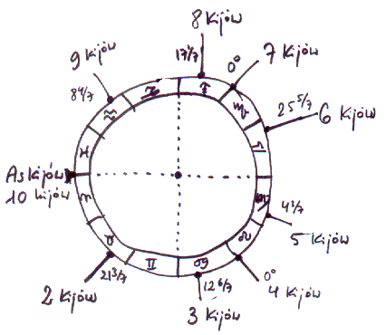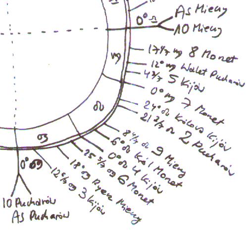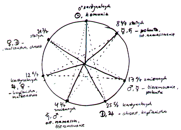 Poniższy rysunek przedstawia całość tego systemu. Jaki charakter mają pięciokrotne punkty zodiaku, nie będę wyliczał, gdyż właściwie nie różnią się one od odpowiednich kart taroka, a te zostały już wcześniej opisane ze szczegółami.