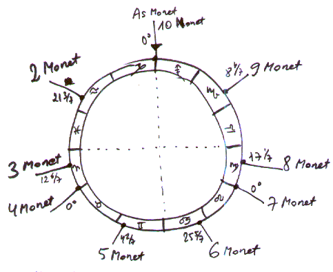 | Rys. 16. Małe arkana z koloru Monet w zodiaku |