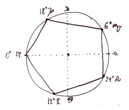 Punkty trzykrotne, czyli wierzchołki tych doczepionych trójkątów, a wraz z nimi znaki zodiaku, mają w astrologii swój sens, swoje znaczenie. Otrzymały je na tej zasadzie, że trzy punkty każdego trójkąta układają się w cykl rozruch - pełnia - rozproszenie. Jednocześnie każdy taki trójkąt odpowiada jednemu żywiołowi: temu, który "siedział" już w punkcie kardynalnym.