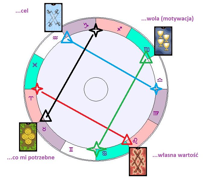 Oczywiście, są to wyraźnie różne napięcia psychiczne, charakterystyczne dla tych czterech znaków. Z dużą dokładnością w konwencji tarota odpowiadają im wspomniane cztery karty-czwórki: czwórka pucharów w przypadku Skorpiona, czwórka mieczy w przypadku Wodnika, czwórka monet dla Byka i czwórka kijów dla Lwa.
